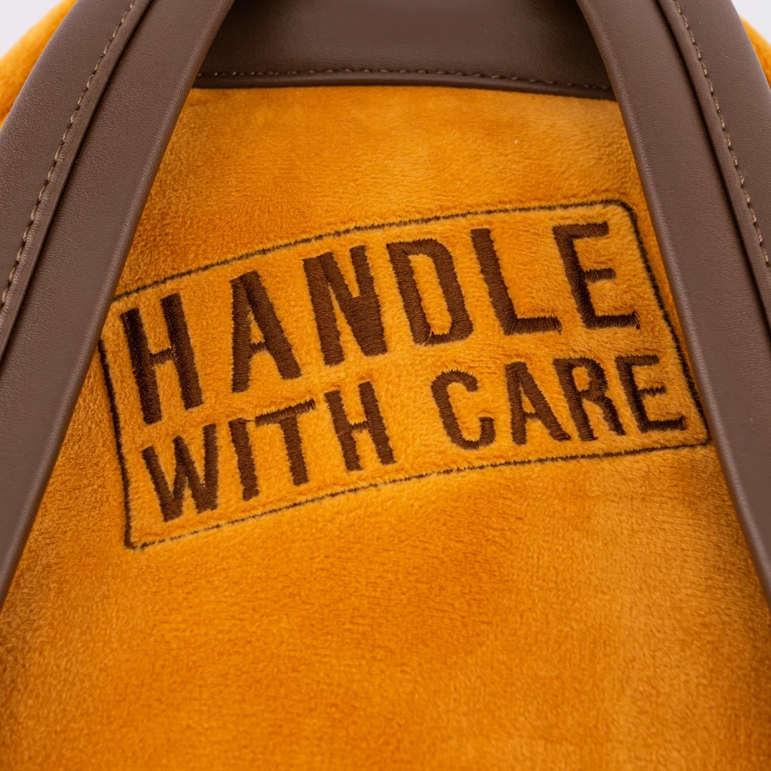 - Plush mini backpack with faux leather trim